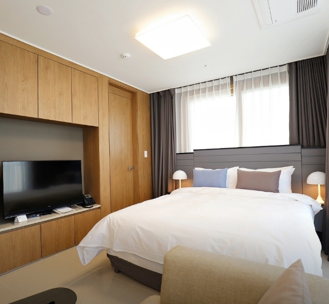 속초 고속터미널에서 도보로 10분 정도 걸려요. 버스정류장도 앞에 있어 접근성이 좋고 건물 내에 편의점과 카페가 입점해있어 편리했어요. 건물 자체도 매우 깨끗하고 객실도 깨끗했어요. 이불도 너무 푹신해서 잠이 솔솔 오더라구요. 수압도 좋고, 샴푸 향도 좋았네요.