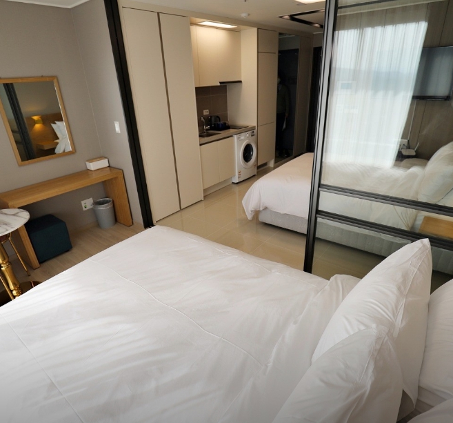 가까운 거리에 편의시설 많고 바다도 가깝고 룸 상태나 뭐하나 빠지지 않았다고 해요 ㅋㅋ엘리베이터 이용 후기로 고민하시는 분들은 입퇴실 시간 조금만 비켜가면 진짜 수월하게 이용하실 수 있을 거에요 엘리베이터 때문에 이 기가 막힌 뷰를 놓치시면 진짜 후회하심.. 가성비 갑 & 뷰 맛집 소문난 데에는 이유가 있는 듯! 가족여행 숙소로 진짜 추천합니다!