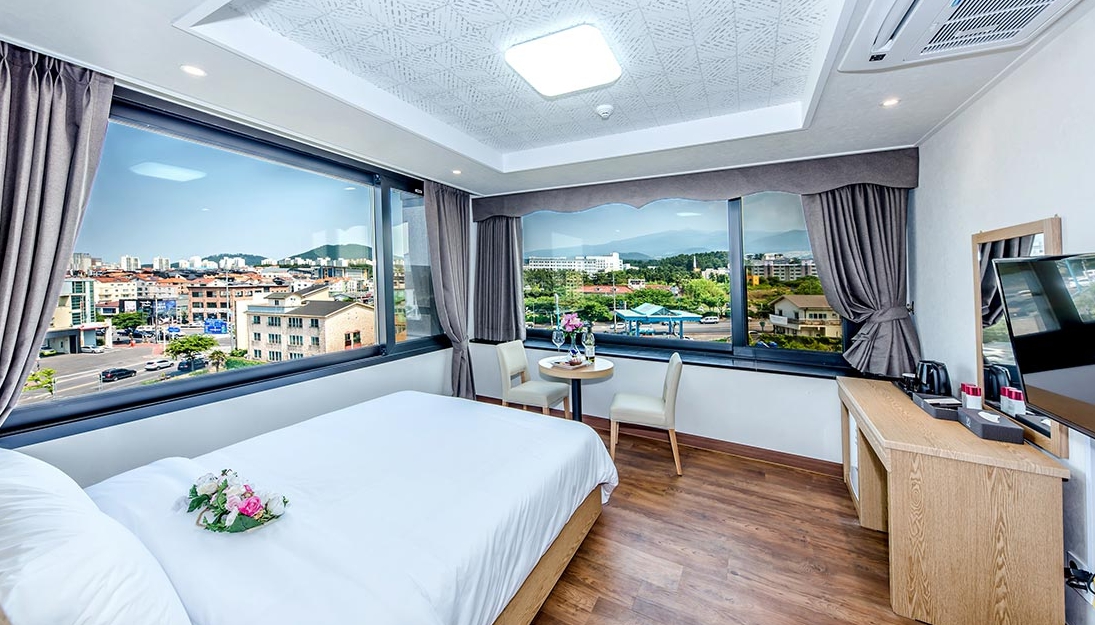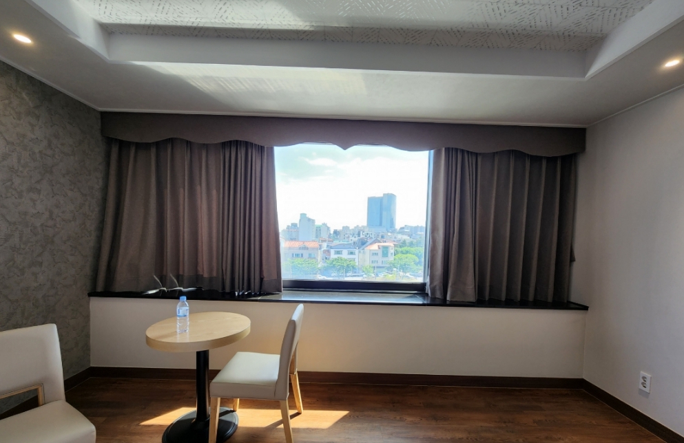 엄청난 호텔은 기대한다면 그건 아닐거에요 하지만 가격을 생각해봤을때 아주 좋은 곳이에요! 노형동이라 신시내와 가깝고 공항하고도 꽤 가까이 있어서 좋아요. 그리고 주차장이 건물 앞에 넓게 있기 때문에 주차하는 데에는 어려움이 전혀 없었어요! 방도 특별한 냄새없이 깨끗한 편이였어요! 에어컨도 잘 나오고 책상도 있었어요!