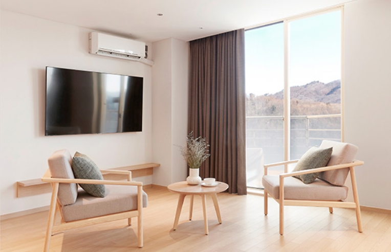 욕조, 인버터전기렌지, 전자렌지,와인잔 및 와인오프너..그외 식기류, 그리고 스타일러가 있답니다. 수영복 건조 여기다 하세요.꿀팁~~~☆☆ 넷플릭스도 볼 수 있고, 배달 음식은 객실 앞까지 배달이 된답니다.