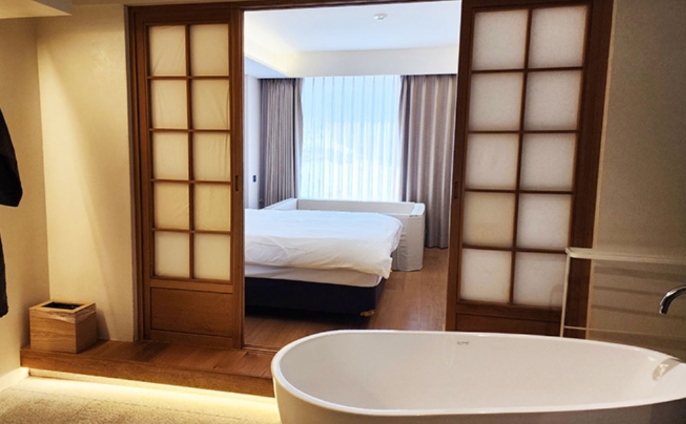 3월 쿠폰까지 쓰니 14만원대에 구매했다지요~~ 이용 내내 신랑한테 칭찬받았어요. 신랑이 지금껏 여행 중 제일 만족스럽다구요. 제 어깨도 으쓱으쓱~~ 룸은 스카이스위트 B타입 다이닝룸이고 욕조 있는 방으로 배정 받았구요.