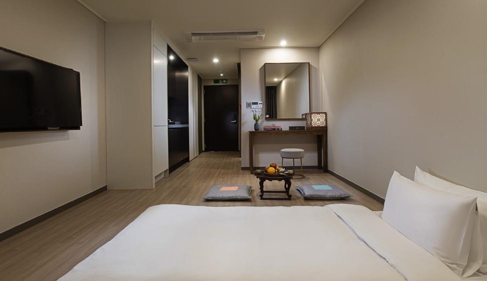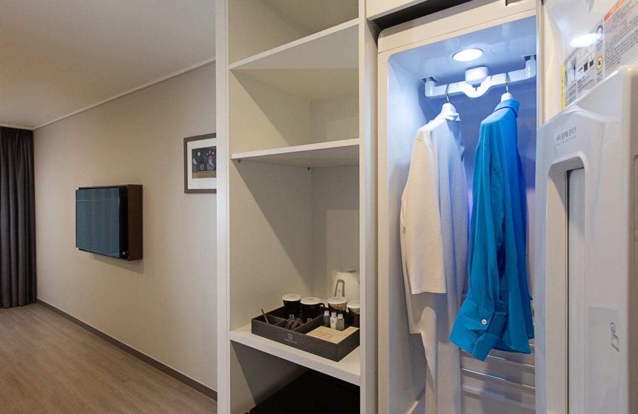 스타일러 있어서 외투 크리닝 좋았고요, 티비도 채널 많이 나오고 간단한 식사해먹을 수 있는 주방 시설도 좋았어요. 냉장고도 큼직해요 쪼그만한 모텔 냉장고 아니라 얼음 얼리고, 음식들 보관하기 좋았어요