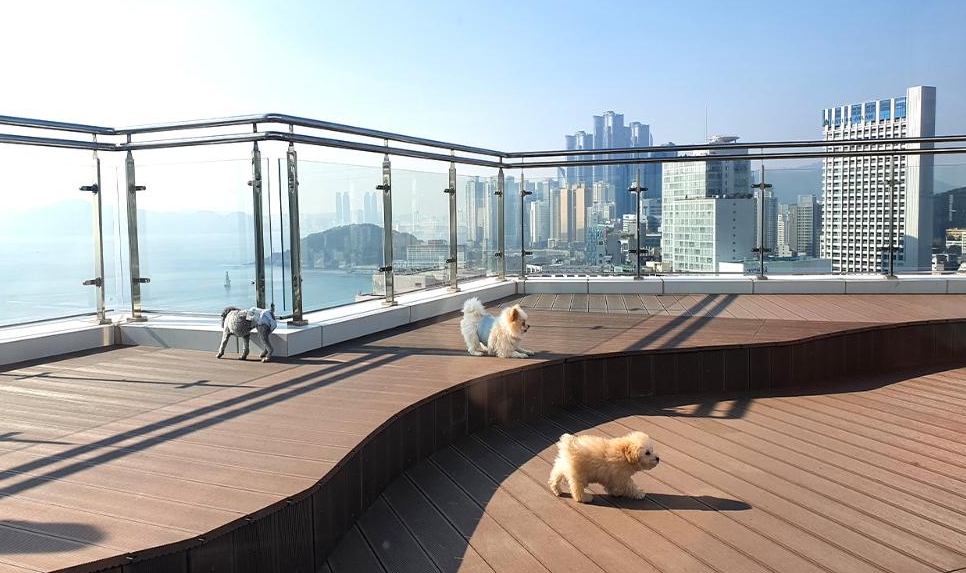 버스정류장이랑 바다 너무 가까워요 그냥 신호등 하나 건너면 해운대 백사장이에요 배달 시켜 먹을 때 맛집 꽤 있었어요 3층에 강아지 놀이방 있어서 음료도 주고, 호텔링도 되고, 맡겨놓고 간 강아지 봤었는데 직원분들이 강아지에 대하는 거에 진심이셔서 저도 나중에 안심하고 맡길 수 있겠더라구요 25층에 애견동반 레스토랑 있어서 유모차도 빌려주고 강아지밥 메뉴도 있어요 별 5개 만점에 4개반짜리 숙소 담에 또 올게요