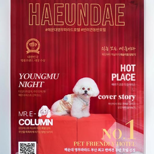 첨엔 이름도 잘 모르는 호텔이라 좀 걱정했는데, 바로 앞이 해운대 앞이고(건물이 큰게 하나 있지만 건물사이로 바다도 보였어요) 앞에 여러가지 시설들이 가깝고 편의점도 많아서 지내기 좋겠어요 혹시 또 강아지 데리고 간다면 다시 이용할 것 같아요