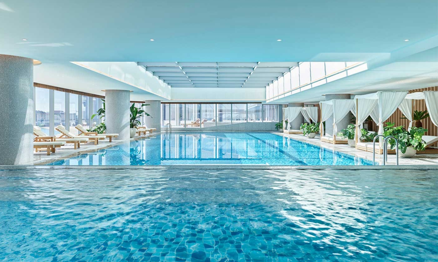 6층에 인티니티풀이 있는데 사이즈가 크지는 않지만 인피티니풀이라 복잡한 해운대 해변이 안보이고 바다만 보여서 좋아요. 체크인할 때 붐비는 시간대가 적혀 있으니 참고하시면서 이용하기 좋을 것 같아요. 저는 아리아 저녁뷔페를 이용했는데