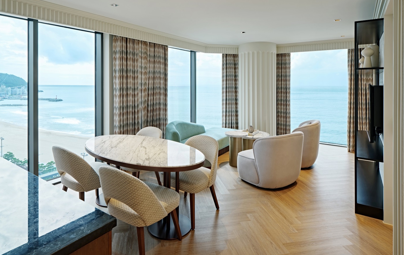 다만 숙소가 오션뷰 였는데 옆 호텔 수영장과 호텔 건물이 더 잘보여서 아쉬웠고 욕실 수압 상태가 약했습니다. 밤부터 새벽까지 그랜드 조선 앞쪽에 차들이 시끄럽게 돌나다니는 것도 아쉬웠습니다. 전체적으로 숙소는 마음에 들었지만 건물 밖 도시가 시끄러운 점이 단점입니다.