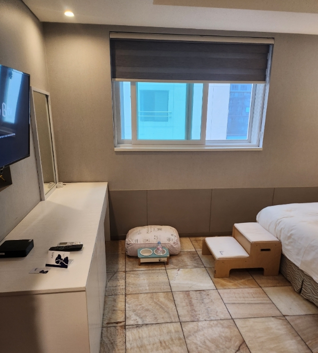 2.애견동반 숙소 비교 깨끗 + 반려견 쿠션,식기 그리고 3층 호텔,목욕,놀이시설,용품샵 이용 가능