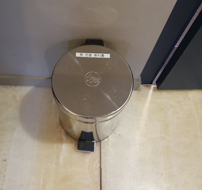 펫전용 쓰레기통 있는 것도 좋았네요 다만 패드 기본 제공이 두 개뿐인게 좀 아쉬웠어요 셀프 목욕은 객실 사용하면 5천원에 드라이룸 수건까지 다 이용할 수 있어요. 산책 후 에어룸은 1층에서 무료로 이용 가능해서 잘 이용했어요 한 방에 반려동물 한마리 동반 무료, 그 이상은 추가되는거 같았고 패브릭 소재랑 침구류에 실례하면 세탁비 5만원 받으니 마킹하는 아이들은 꼭 기저귀 챙겨가세요