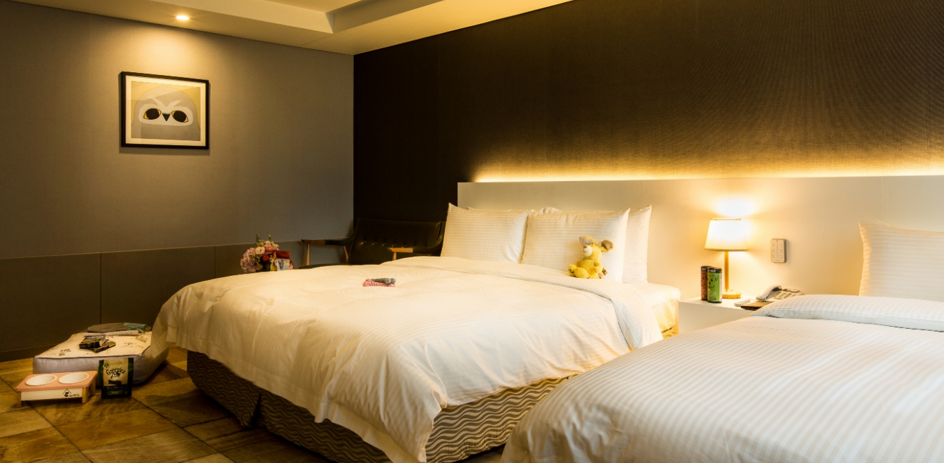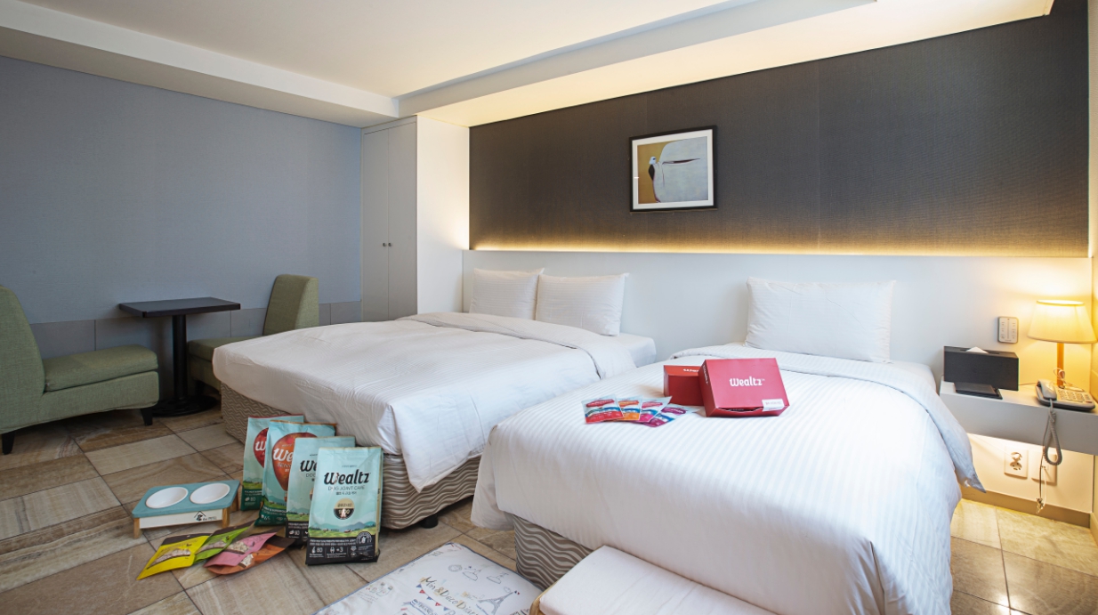 반려동물과 함께 지낼 수 있는 깔끔하고 편안한 객실이 준비되어 있습니다