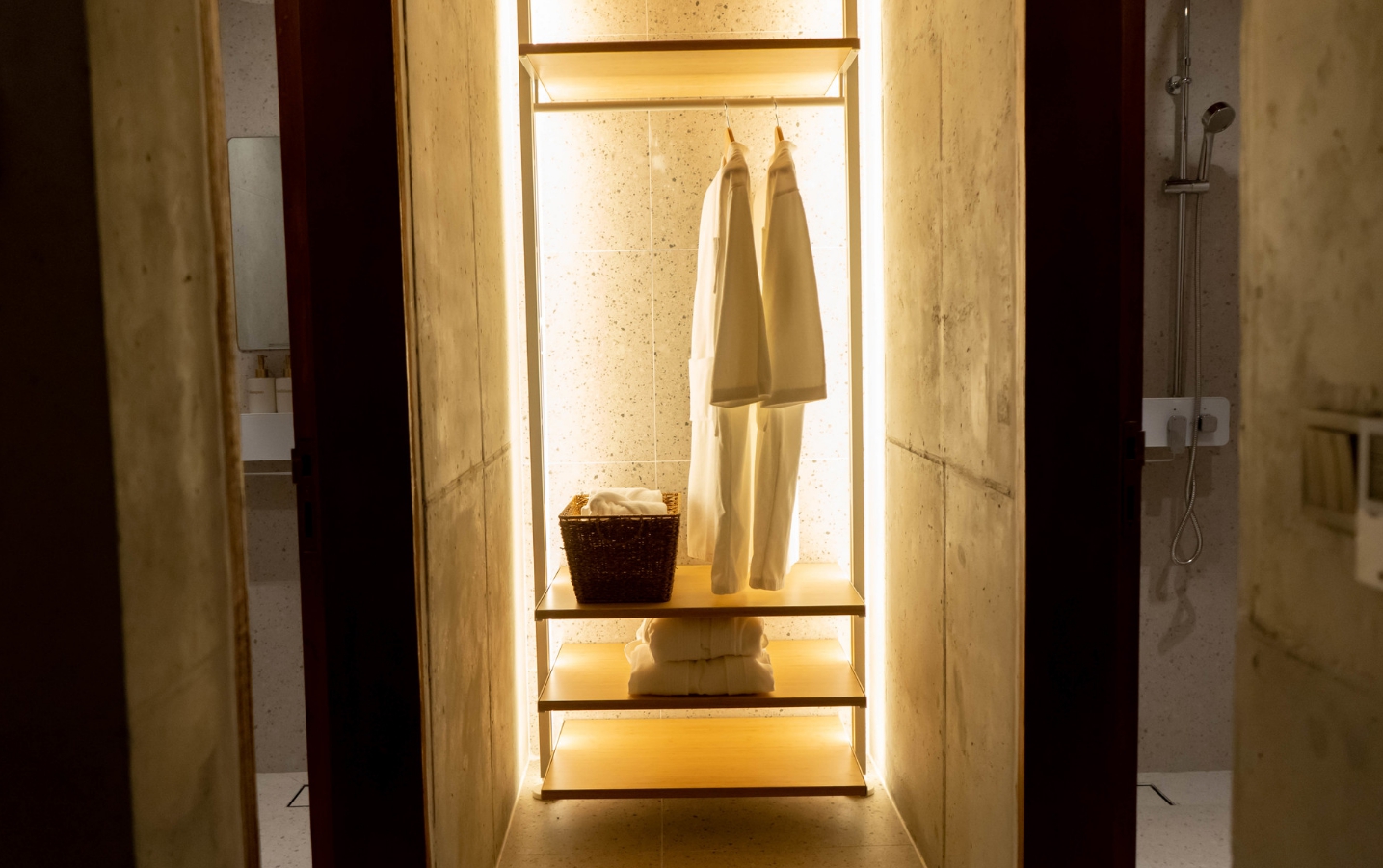 인테리어가 깔끔하고 패밀리룸이라 성인4인+영아2인이 써도 충분히 넓었어요~ 샤워실도 두 개로 나눠있어 빨리 씻을 수 있었고 화장대도 크고 넓어서 좋았어요 히노끼탕에서 아가들 물놀이도 하기 좋았어요~또 6인 식탁이 있는 다이닝룸이 따로 있어서 너무 좋았습니다~전체적인 인테리어와 건물 전체 건축물이 너무 예뻤어요