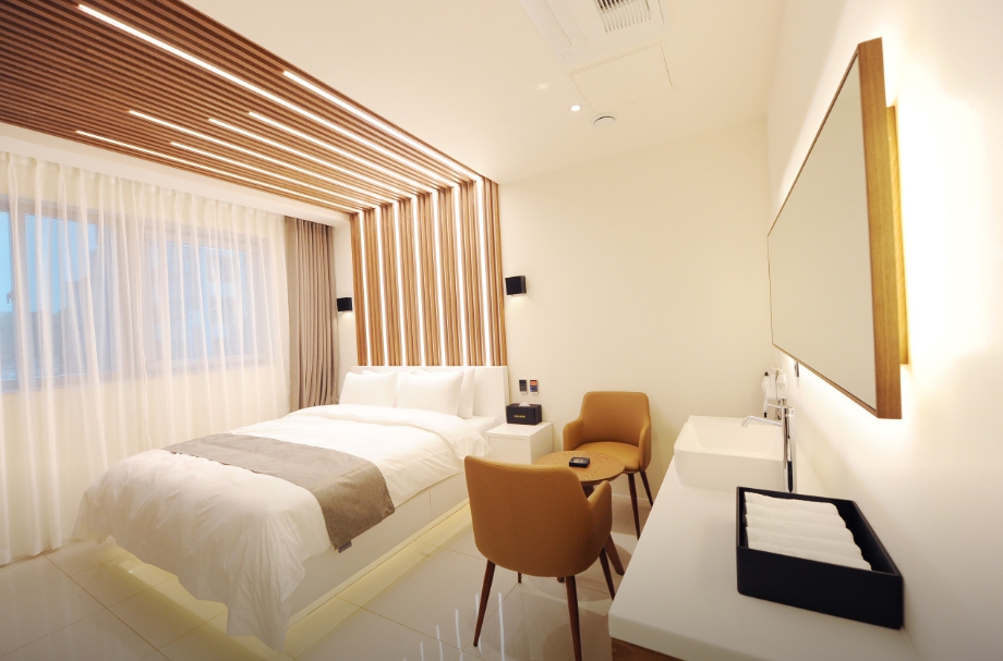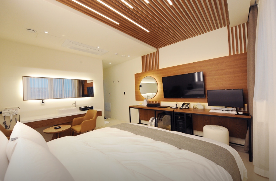 터미널 근거리에 위치해서 이동이 편리하고 식당 편의시설들도 많아 출장 때 이용하기 좋은 숙소라고 생각해요. 입구 데스크 직원분들 정중하고 친절해서 좋았고 객실문을 열었을 때 깔끔하고 모던한 인테리어에 잘 정돈된 침구와 욕실 객실 비품도 잘 정리되어 있어 기분이 좋았습니다.