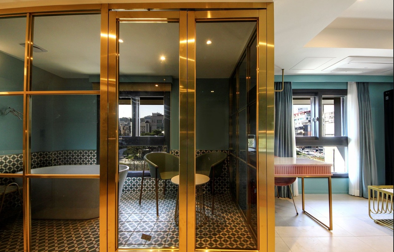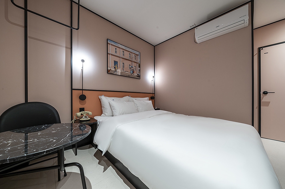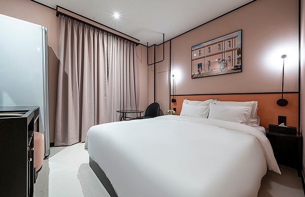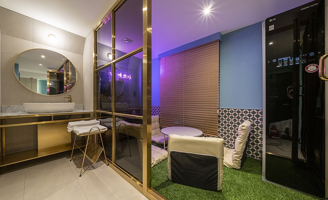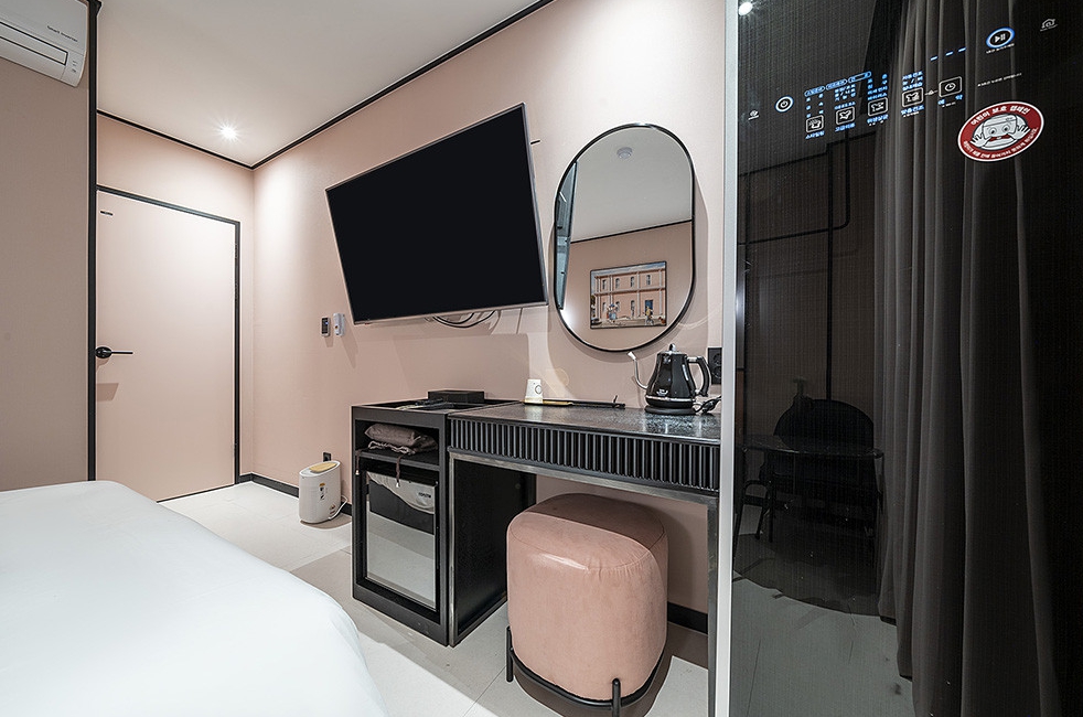 딱 인스타갬성 스타일의 숙소네요 새로 오픈하긴했지만 리모델링인 것 같고요 방 내부 시설들이 완전 새건 아니었습니다 방 내부도 알록달록한 느낌에 여성분들이 좋아할 스타일입니다다만 담배냄새는 살짝 났습니다 방 크기는 협소한 편인데 스타일러가 준비되어 있는 건 좋습니다