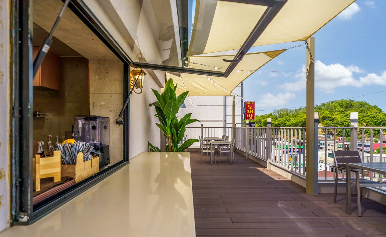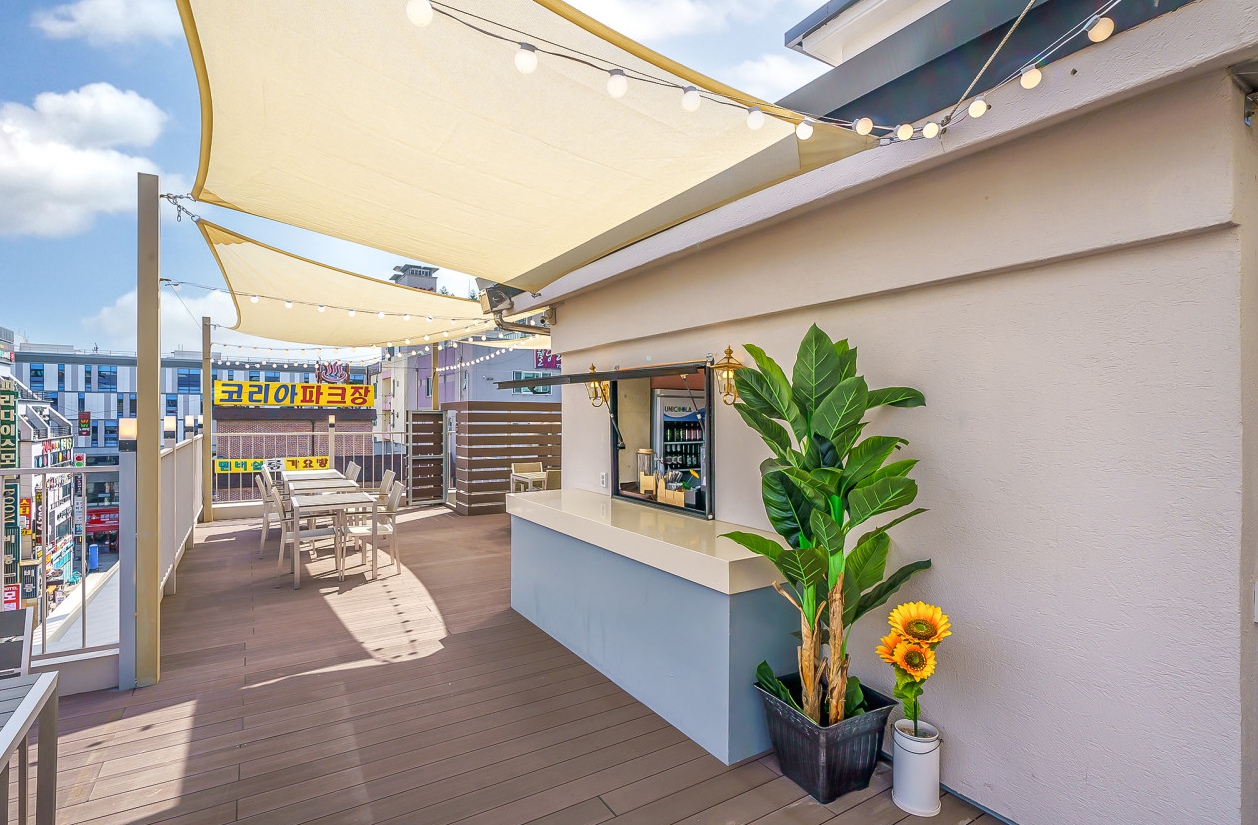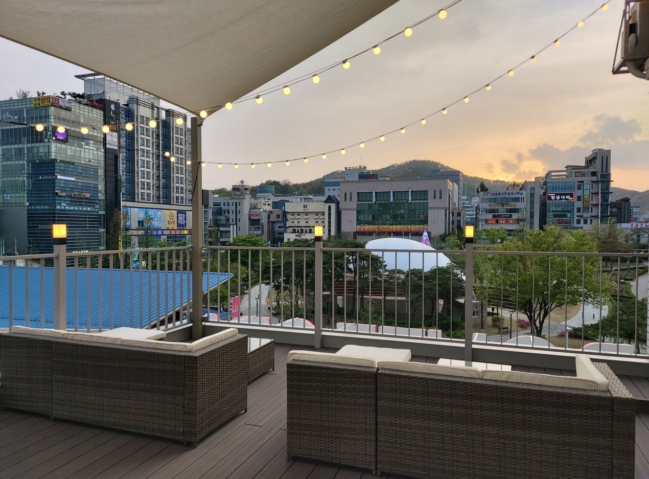 그리고 가장 장점으로는 모텔 자체 루프탑이 있어서 음식을 가져와서 술 한잔하거나 커피 한잔하면 정말 좋을 것 같고 분위기가 장난 아니네요 한국관 나이트가 코앞이라서 유흥거리에 위치하고 있습니다