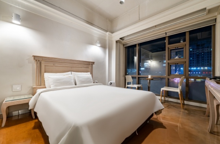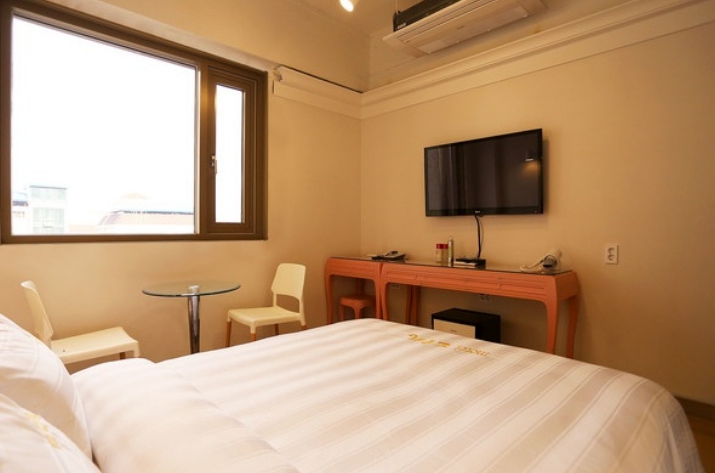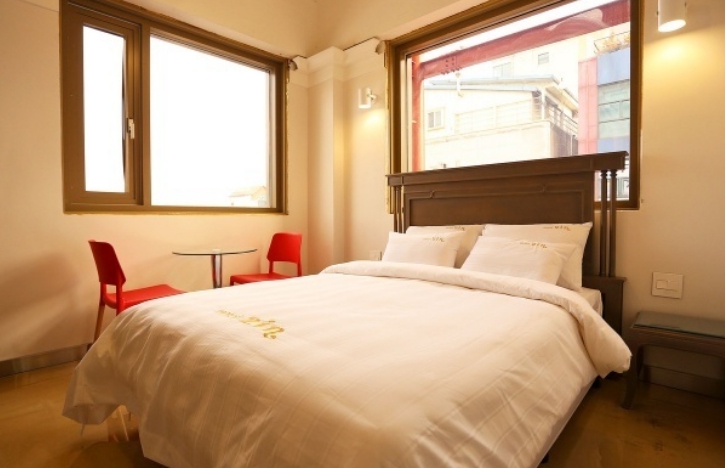 1층에 카페를 운영하고 있는건 호불호가 갈릴 것 같습니다만 천정고가 높고 시설이나 인테리어는 사진처럼 깔끔한 편입니다. 다만 숙박을 하려고 스탠다드보다 큰 딜럭스로 골랐는데 사진으로 본 것 보다 방 크기와 침대가 작습니다. 둘이 누우면 조금 남을 정도라 뒤척이면 좁다 느껴집니다. 더블정도?!(140)