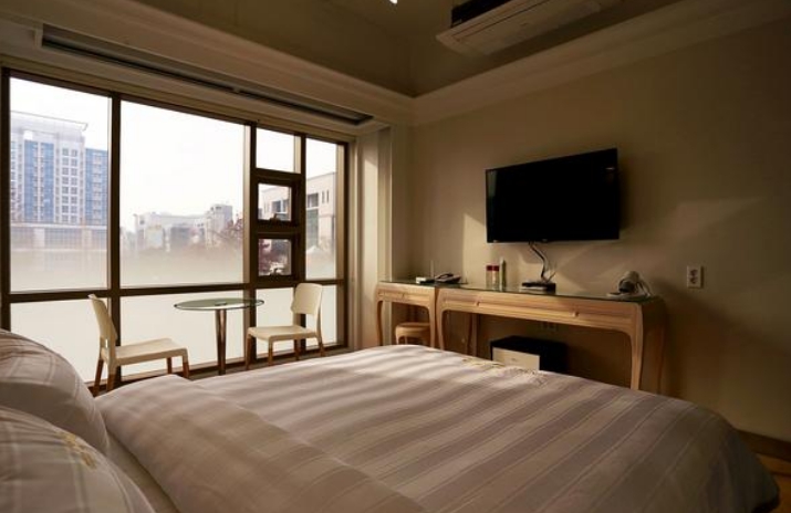 잠만 자기에 괜찮고 장미공원 뷰라서 괘안네요 주말치고 다른 곳보다 저렴하고 나름 신식 건물이에요. 온수매트 주셨고 다른 곳보다는 난방이 약했지만 집구하러 잠만 자기 좋았어요. 번화가라 인근에서 식사하기 편했어요