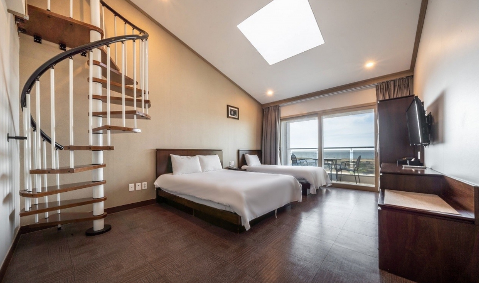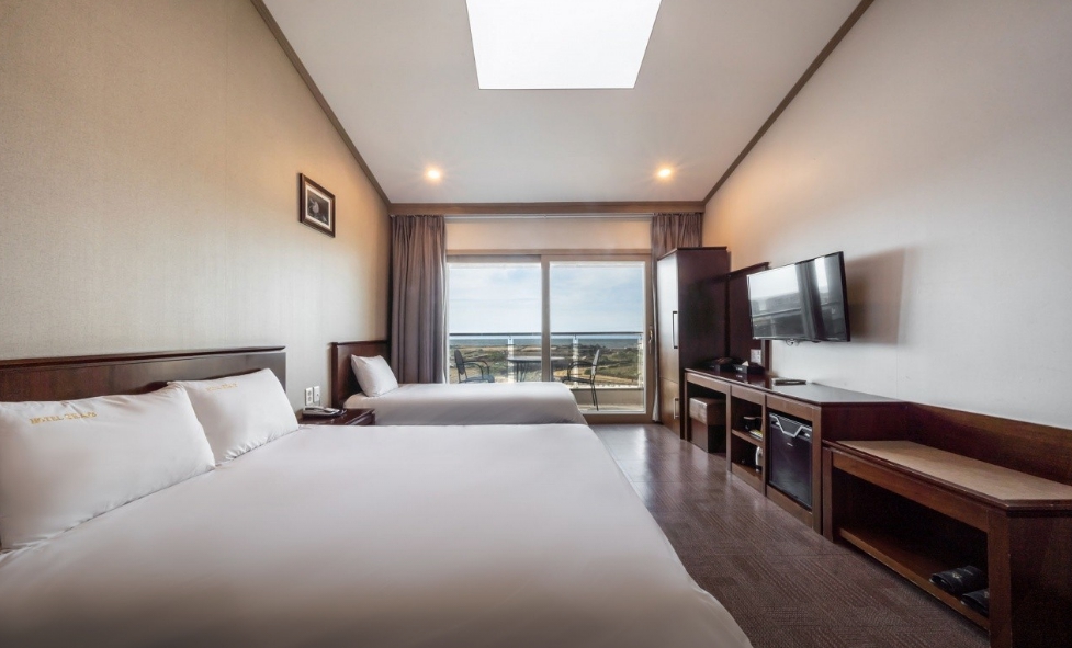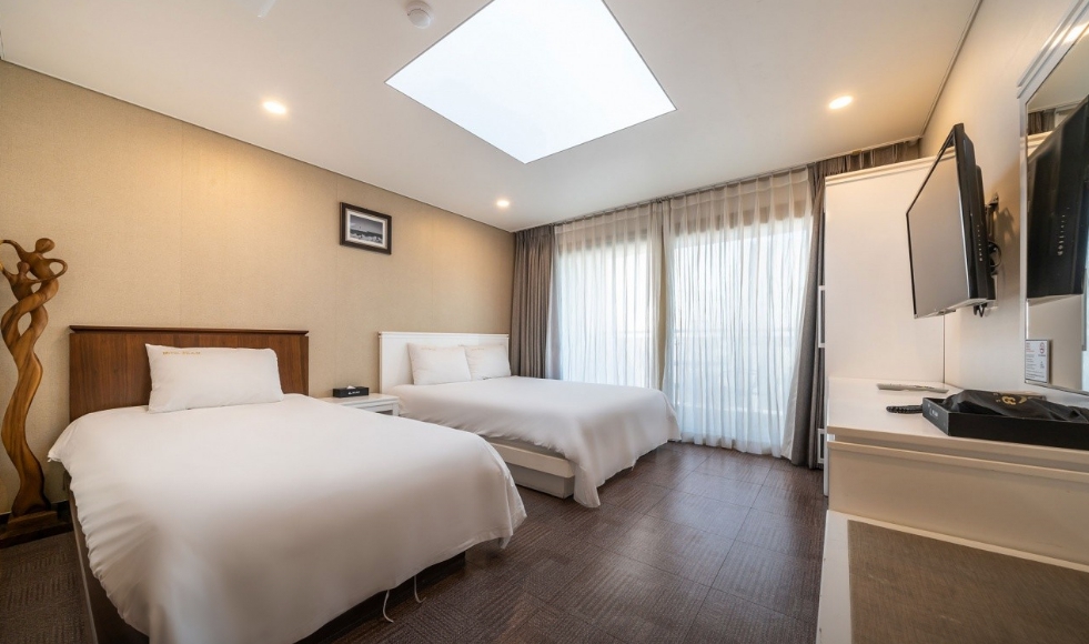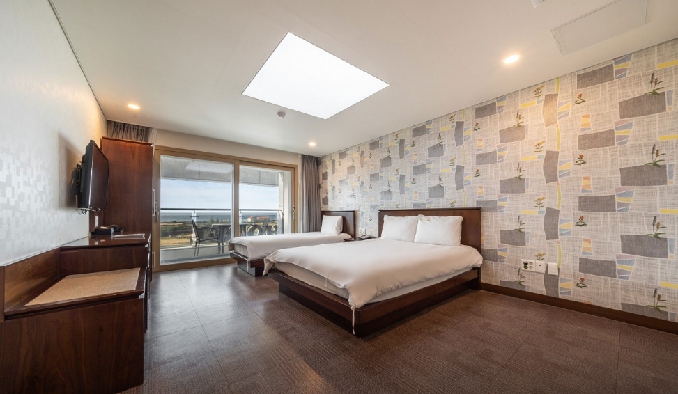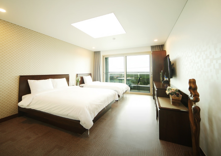 프런트 접수 직원분 친절하셨어요~4인 묵는다니 수건도 넉넉히 주셨고요 멀리 바다도 보이고 뱅기도 보이고 그만큼 공항도 가깝고요 바닥이 카페트나 타일이 아니라 장판이라 그것도 괜찮은거 같아요 무엇보다 주차공간이 넉넉했어요 가성비가 좋은 숙소에요~ 저희처럼 잠만 주무시는 경우는요