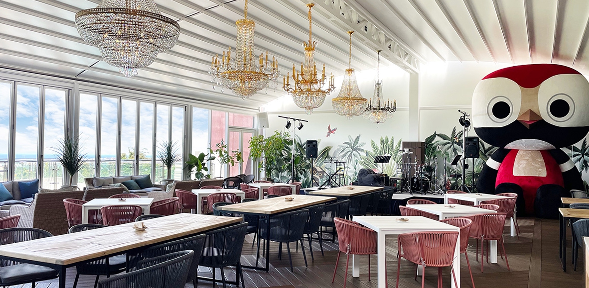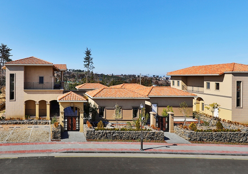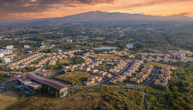 남쪽으로 한라산이 솟아있고 북쪽으로 이호테우해변 풍경이 펼쳐지는 아름다운 장소에 있습니다