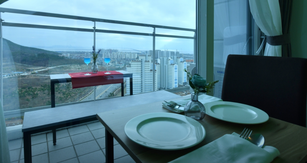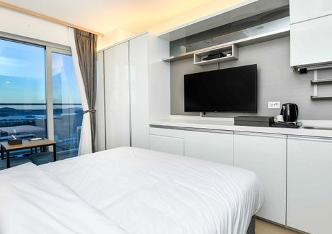 영종도 조용하고 고층 배정도 좋구 여유와 조용한 휴식하기엔 좋아요 뷰도 적당하고 난방도 잘 되고~샤워부스가 좁아서 물이 좀 많이 튀는?? 단점이 있긴하지만 무인으로 이용도 가능하니 비대면이라 좋고 편의점도 1층에 있어서 아주 편리하게 이용가능!!! 주인분친절~