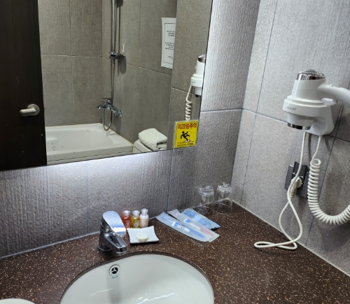*불편한점: 조명이 하얀빛, 바닥이 카펫트라 아쉬움 슬리퍼 신기 번거로움, 그리고 1회용 슬리퍼가 아니라 공용 슬리퍼라서 (물론 소독을 하셨겠지만^^) 먼가 찝찝… 린스 샤워스펀지 없음 방음 안됨 새벽에 쪼르르 소변 누는 소리가 자꾸 들려서 거슬렸고 쿵 쾅 소리도 다 들려요.. 리뷰에 주차장 협소 헬이다 해서 호텔 건물 뒷편에 힐링프라자 상가 맞은 편에 주차함 대체적으로 만족하고 편히 잘쉬다가요