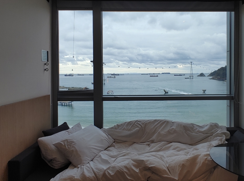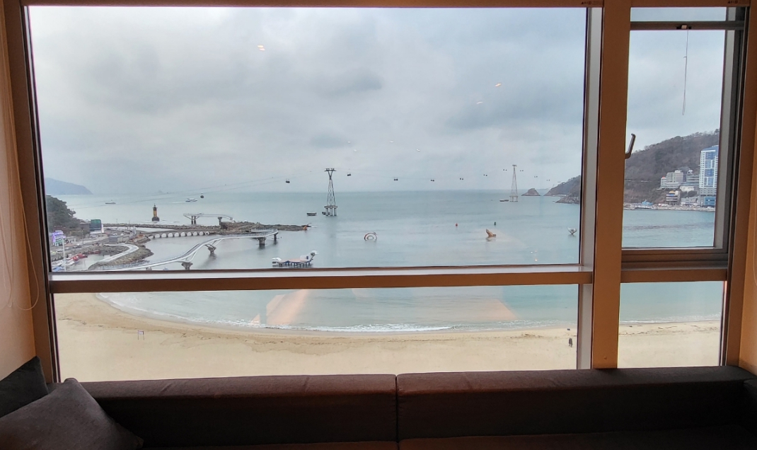 새해 기념으로 여자친구와 해돋이 보기 위해 여기저기 알아보고 검색하다가 방문하게 됐어요. 부산 호텔들 많이 방문 해봤는데 진짜 오션뷰는 최고입니다 특히 창문 아래 쇼파가 있어서 해변 바로 앞에서 쉬는 기분이고 창문이 커서 쉬원쉬원했어요.