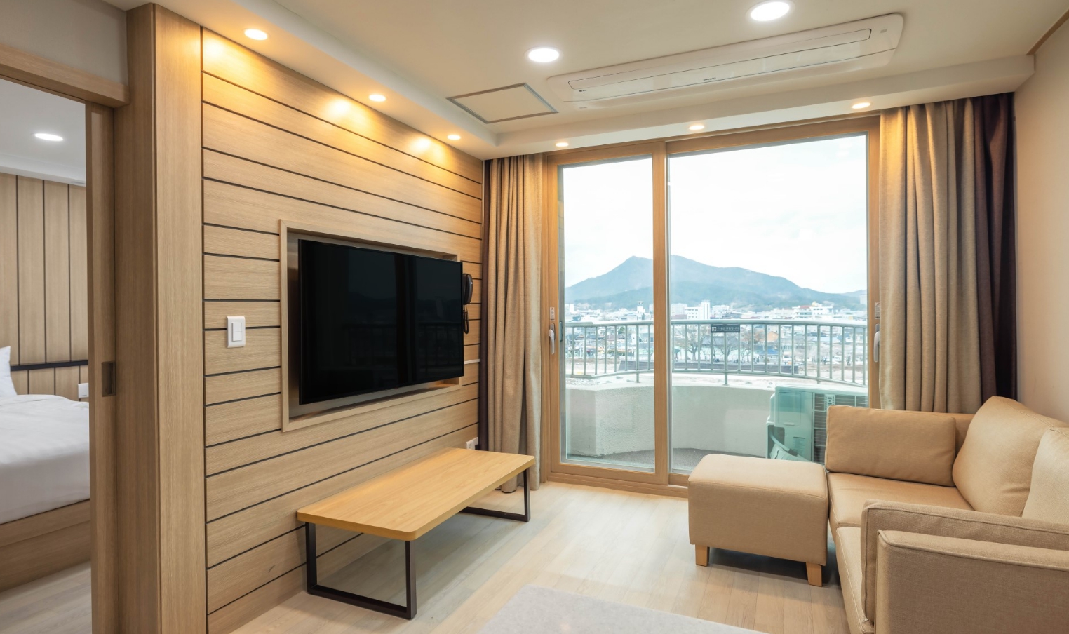 예전에 방문했을 때보다 약간 리뉴얼 된 느낌이더라구요 쇼파와 식탁 탁자가 새걸로 바껴있어 깨끗했구요^^ BTV로 볼 수 있는 채널이 많았어요^^ 그리고 추운 겨울인데 정말 몸을 뜨끈뜨끈 지지는 찜질방처럼 자서 너무 좋았네요^^그리고 관광지와 접근성도 너무 너무 좋습니다. 아이와 좋은 추억을 만들 수 있어서 감사합니다. 그리고 늘 느끼는 것이지만 직원분들이 모두 친절하시고 따뜻하게 대해주시는 것 같아 여행이 더 즐거워지는 것 같네요^^