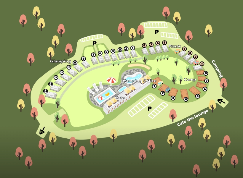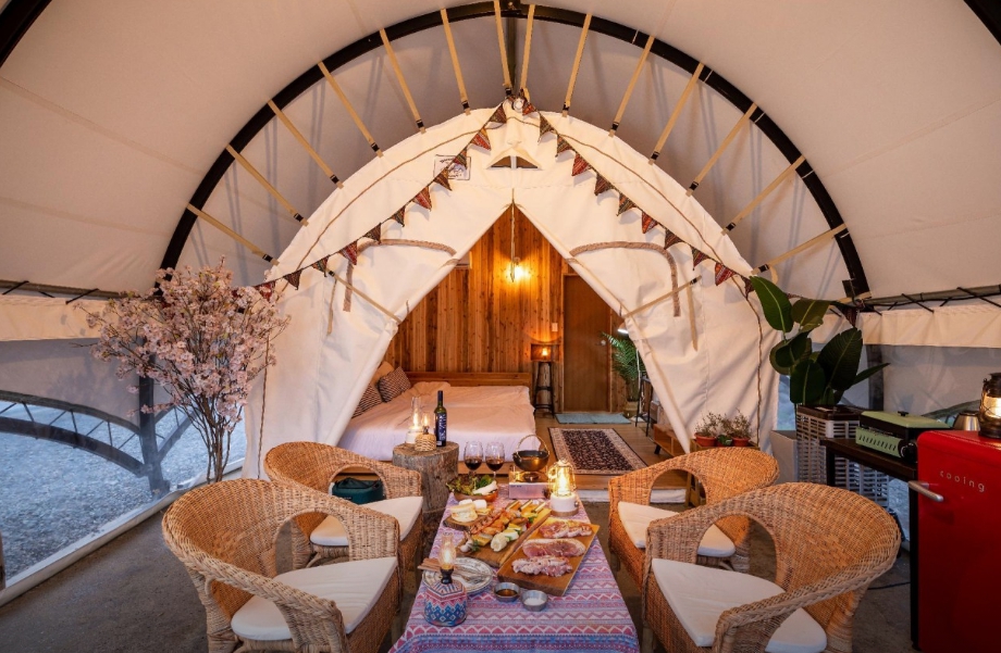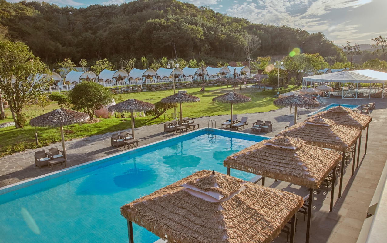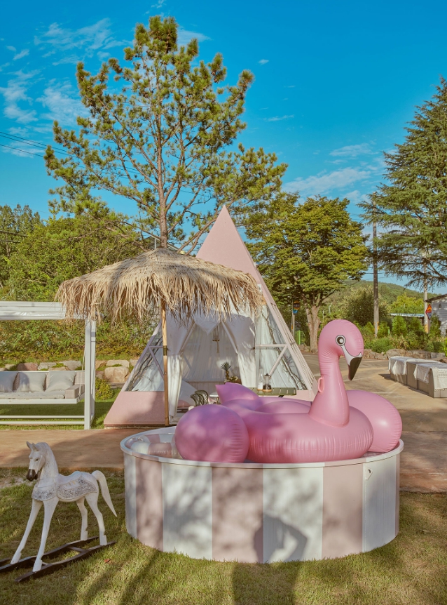 4가지 형태의 글램핑 객실 종류가 준비된 펜션입니다 수영장, 바비큐, 카페, 가든키친 넓은 그라운드 등 있습니다