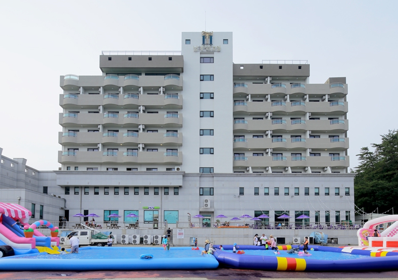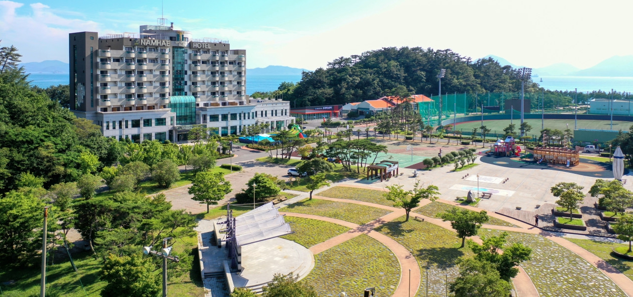 남해군 해수욕장 근방에 자리 잡은 스포츠파크 호텔입니다