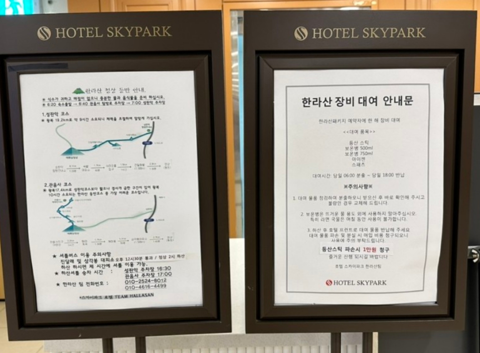 한라산 픽업서비스 이용을 위해서 스카이파크 호텔에 예약했습니다 우선 한라산 등반에 필요한 대여 서비스를 해줘서 좋았고 픽업 셔틀도 해주셔서 편리하게 이용하였습니다 숙소 컨디션도 나쁘지않고 잘 쉴 수 있었습니다. 다만 카운터 직원분과 의사소통이 잘 안된다는 느낌을 받아서 약간 불편했긴했는데 이 점은 조금 개선되어야 할 것 같습니다.