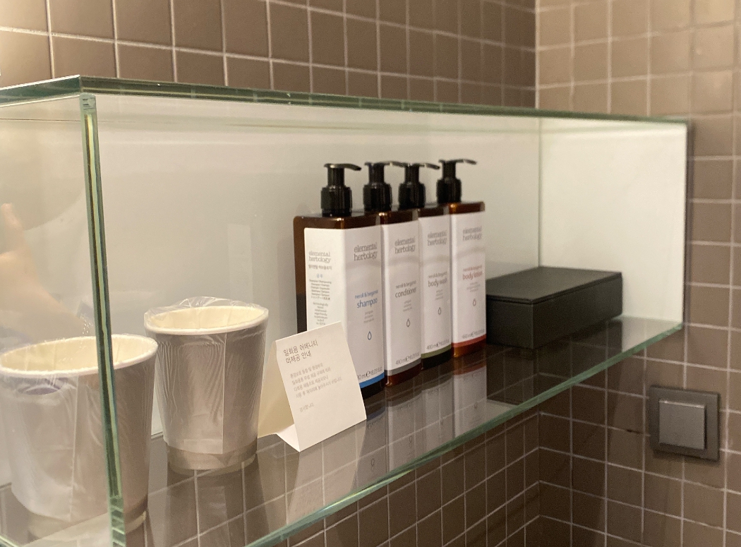 숙소에서 청결을 제일 중요시하는데 화장실 세면대에서 살짝 냄새가 올라오는 거 빼고는 전체적으로 만족했어요 그리고 복도도 가운데가 뻥 뚫려있어서 시설이 보는 재미가 있습니다 굳이 단점을 뽑자면 수건이 너무 올이 잘 빠졌어요 닦고 나면 하얀 수건 올이 자꾸 손에 남아있더라고요 그리고 다회용 어메니티는 그리 좋은 편은 아니니 샴푸에 민감하신 분들은 챙겨오시는게 좋을 거 같아요 딱히 머리 뻑뻑한거에 신경 쓰는 편이 아니라 상관없었습니다