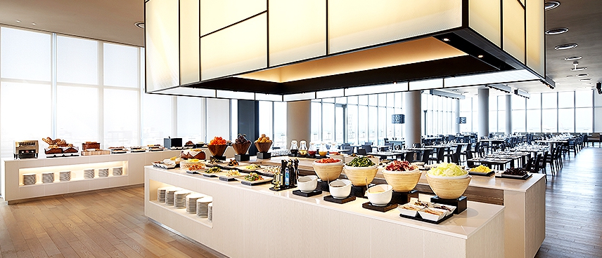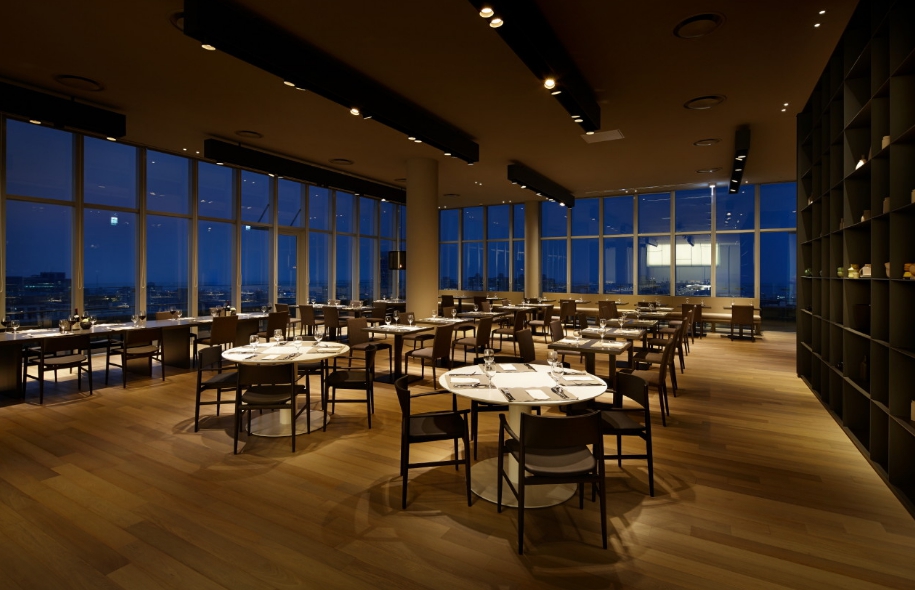 최상층에 있는 레스토랑에서 제주 시내 전경을 한눈에 내려다보며 식사를 즐길 수 있습니다