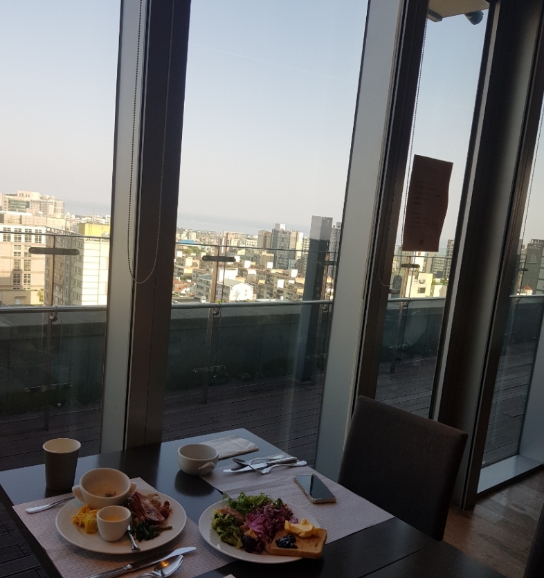 12층 라운지에서 아침엔 조식, 저녁엔 라운지로 운영되어 간단하게 맥주 및 와인을 드실수 있어요. 조식은 가볍게 드실만한 음식 위주로 준비되어 있습니다. 주차장 이용 시 불편함은 없었습니다. 가성비와 편리함을 원하시는 커플 위주의 여행객들에게는 괜찮은 선택지가 아닐까 생각해봅니다.