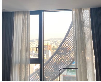 높은 층을 좋아해서 말씀드렸고, 층은 높은 층으로 배정 해주셨지만 뷰는 전혀 감상할 수가 없었어요..