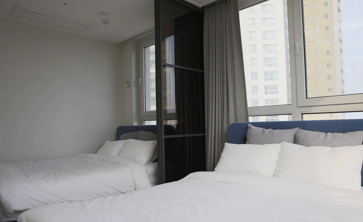 위치가 해변이랑 가까워서 참 좋았는데, 청소가 좀 아쉬웠어요ㅠ 처음 방 배정 받았을때 하수구 냄새가 심했는데 방 교체받은 후로는 괜찮았습니다. 미리 알고 갔지만 체크아웃 때 엘레베이터에 사람이 엄청나긴해요 그래서 타이밍 잘 밎춰야 될 것 같습니다. 주차타워에서 출차도 마찬가지구요 ㅋㅋ 이래저래 불편한 부분은 좀 있었지만 대신 그만큼 합리적인 가격에 깔끔한 에어비앤비? 느낌으로 잘 수 있어서 마음에 들었어요
