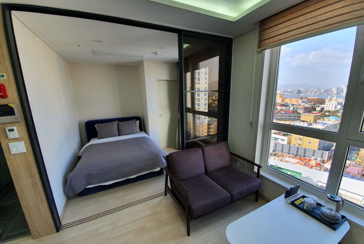 깔끔하고 스타일러도 잘 사용했어요ㅎㅎ다음에도 여기로 숙소잡고 올 예정입니다^^인덕션 스타일러 냉장고와 기본 조리도구를 갖추고있어서 매우 편리합니다. 에어컨 비데도 설치되어있어요 가격이 저렴한 것도 큰 장점입니다 약간의 단점은 청소 상태가 안 좋았고 엘레베이터가 1대라 오래 기다려야할 때가 있었습니다. 그래도 1층 무료커피도 좋았고 주변에 먹거리 교통편도 좋습니다
