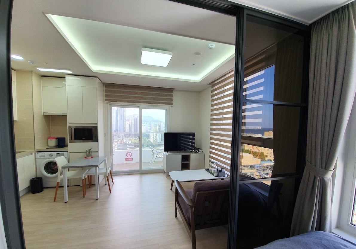 급하게 예약했는데 생각보다 괜찮은 숙소네요. 발코니있어서 좋았습니다. 바닷가에서 좀 떨어져 있지만 고층으로 올라가니 사이드로 바다가 보입니다. 스타일러, 쇼파, 전저렌지, 큰 냉장고, 수납 등 편리해서 좋네요. 태풍 때문에 기계식 주차가 고장나서 지상 주차장에 차를 몇 대 못댄다는 불편함이 있습니다. 자리가 없으면 멀리 주차해야 한다는….가성비 좋은 숙소 입니다.