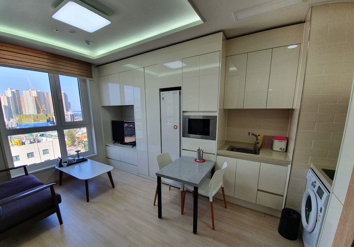 급하게 예약했는데 생각보다 괜찮은 숙소네요. 발코니있어서 좋았습니다. 바닷가에서 좀 떨어져 있지만 고층으로 올라가니 사이드로 바다가 보입니다. 스타일러, 쇼파, 전저렌지, 큰 냉장고, 수납 등 편리해서 좋네요. 태풍 때문에 기계식 주차가 고장나서 지상 주차장에 차를 몇 대 못댄다는 불편함이 있습니다. 자리가 없으면 멀리 주차해야 한다는….가성비 좋은 숙소 입니다.
