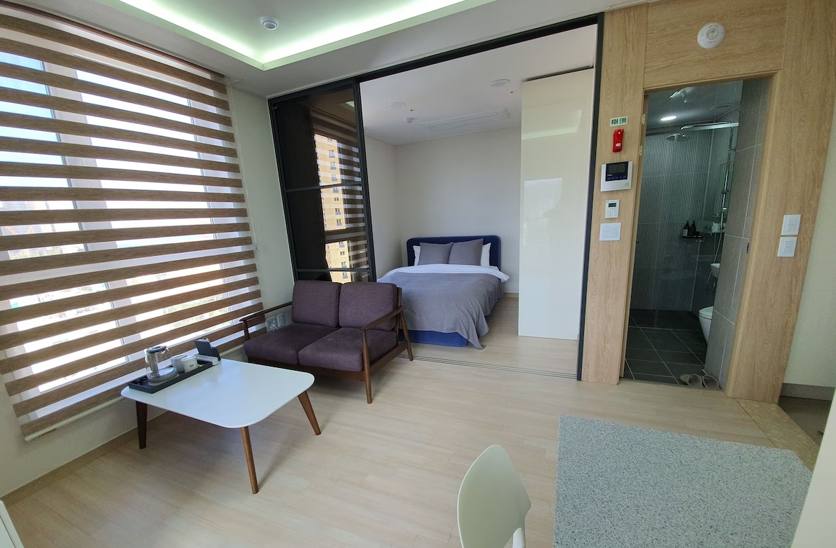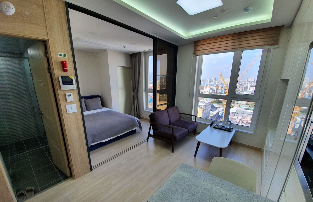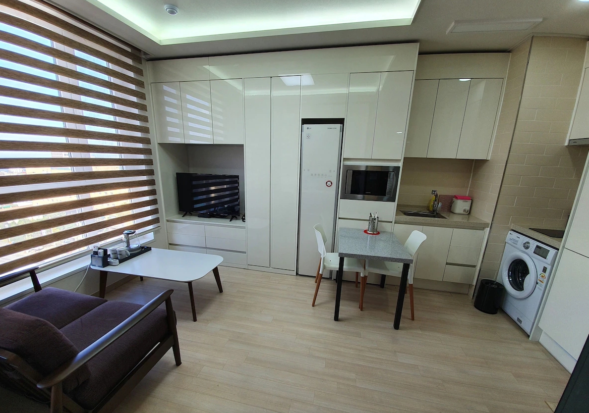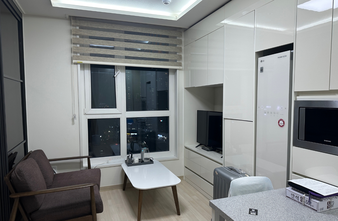 깔끔하고 스타일러도 잘 사용했어요ㅎㅎ다음에도 여기로 숙소잡고 올 예정입니다^^인덕션 스타일러 냉장고와 기본 조리도구를 갖추고있어서 매우 편리합니다. 에어컨 비데도 설치되어있어요 가격이 저렴한 것도 큰 장점입니다 약간의 단점은 청소 상태가 안 좋았고 엘레베이터가 1대라 오래 기다려야할 때가 있었습니다. 그래도 1층 무료커피도 좋았고 주변에 먹거리 교통편도 좋습니다
