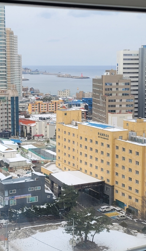 작년에 2박으로 묵었었는데 넘 좋았던 기억이였어서 이번 속초 여행 숙소도 여기로 정했어요. 고층으로 배정해 주셔서 숙소뷰가 아주 끝내주네요. 청초호도 보이고 바다도 보이고 1석2조에요. 속초 해수욕장도 길 건너면 금방이고 고속버스터미널도 가까워서 저희같은 뚜벅이 여행자들한테는 너무 좋은 위치의 숙소에요. 도보로 아바이마을도 갈 수 있어서 버스 안타고 잘 걸어다녔어요!