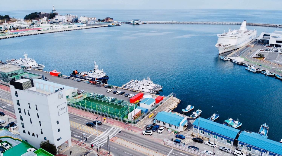 속초 동명항(오징어 난전) 바로 앞, 아바이 마을, 중앙 전통 시장, 속초 시청, 시외버스터미널 모두 도보 5분 거리 위치.