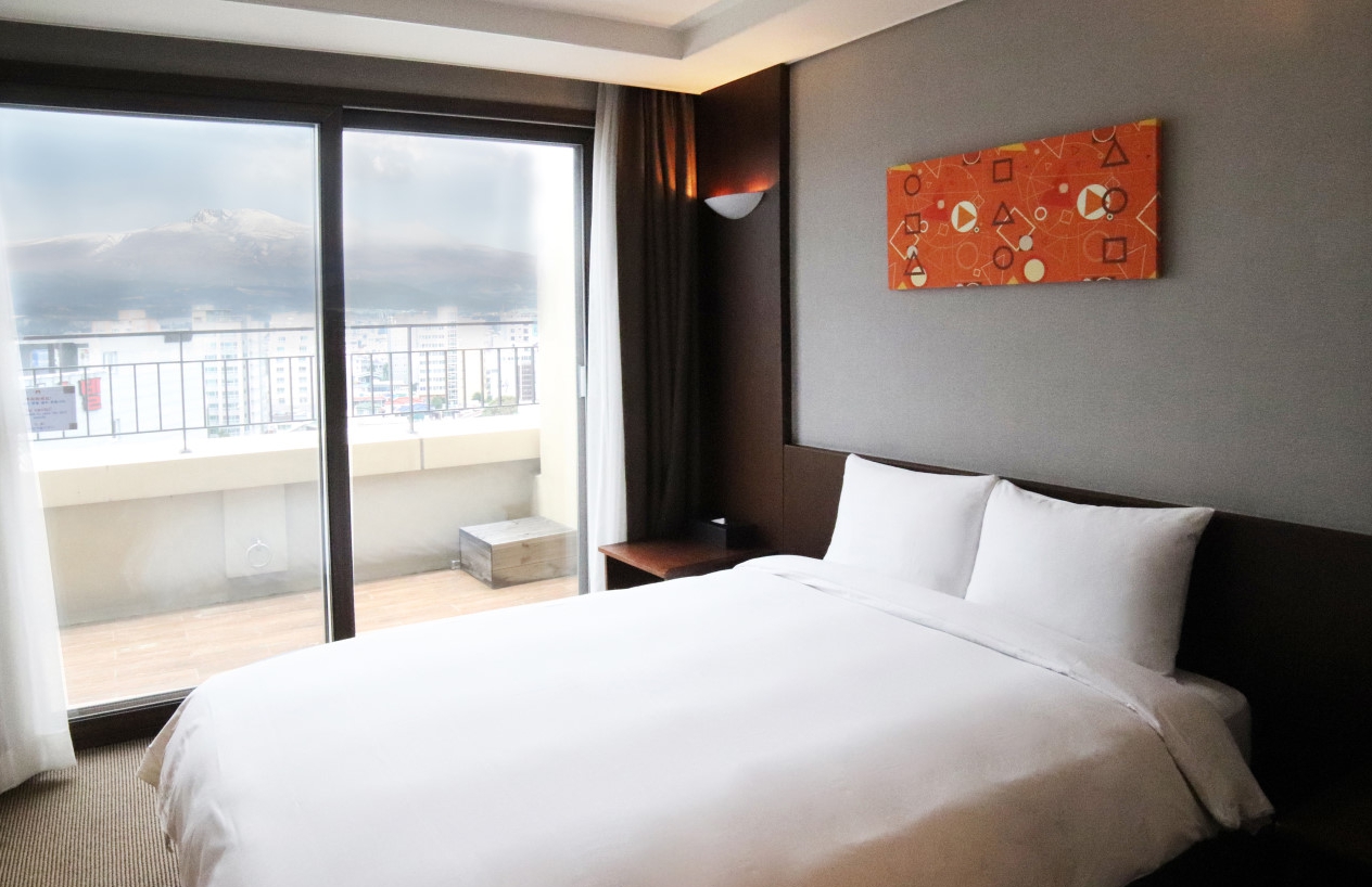 3박을 엠스테이호텔에서 묵었는데 기대했던 것보다 더 만족스러웠습니다 프론트에서 응대해주었던 모든 직원들이 친절했고 10층에 배정 받았습니다 한라산 시티뷰였는데 한라산이 너무 뻥뚤리게 다 보여 웅장함을 느낄 수 있어 너무 좋았습니다 오히려 오션뷰보다 좋았던 것 같습니다 방도 아늑하고 편안했습니다