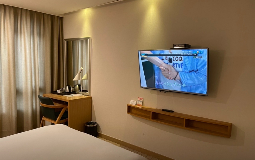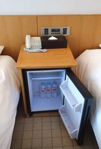 냉장고가 작동이 잘 안되어서 차갑게 먹고 싶으면 1층 로비에 맡겨달라고 하면 돼요 객실에 있는 커피 맛있었습니다 아쉬운 점은 깔끔하긴 한데 구석구석 청소는 덜한 느낌이었어요 그래도 화장실에 비대가 있어서 편했습니다 10월에는 수학여행과 단체 관광객이 많아서 금방 객실이 없을 수 있으니 미리 예약하시는게 좋고, 이 호텔은 단체관광객이 많더라구요 참고바랍니다