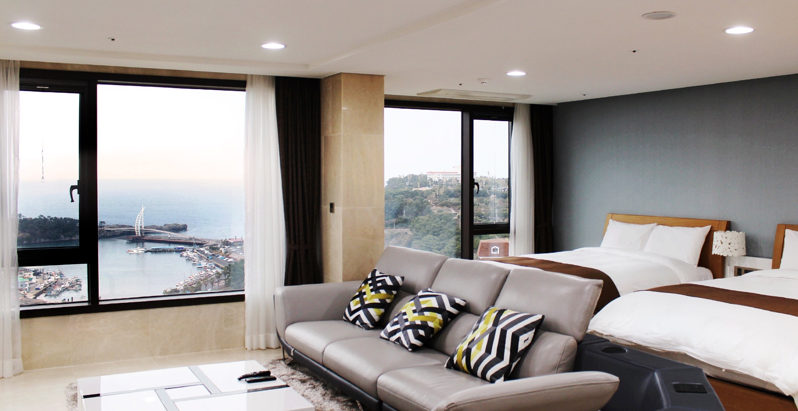 쾌적한 객실 환경과 서귀포 미항이 바라다보이는 루프탑 수영장을 갖추고 있습니다