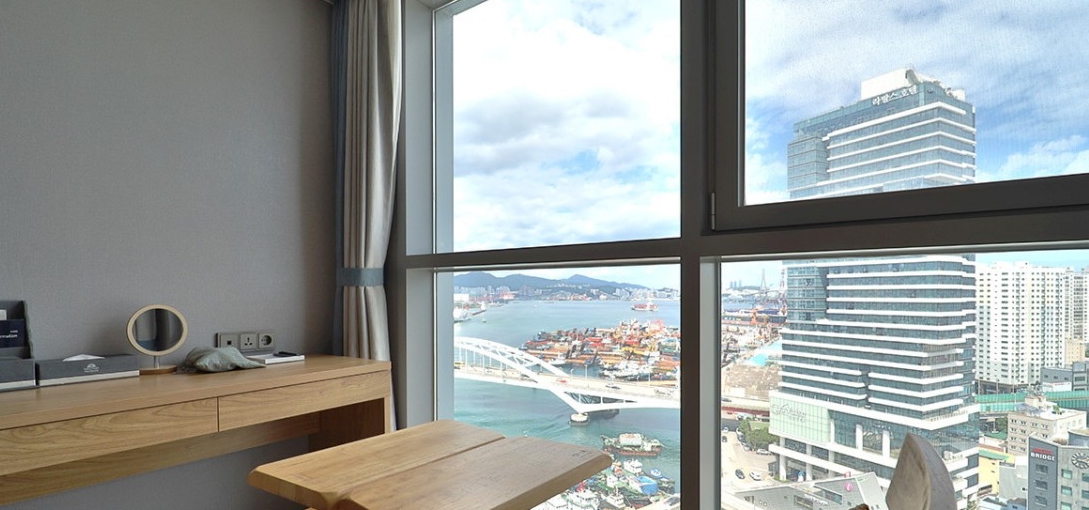 우선 호텔 내 3개 업체 (노스하버 로비는 8층)가 있어 체크인할 때 약간 불편한 점은 있었으나, 직원 서비스가 친절했습니다 객실 내부는 비교적 깨끗하고 의자 및 테이블의 퀄리티가 좋으며 무엇보다 영도와 중구의 바다를 한꺼번에 감상 가능한점에서 여행객들에게는 큰 힐링이 되지 않을까 합니다