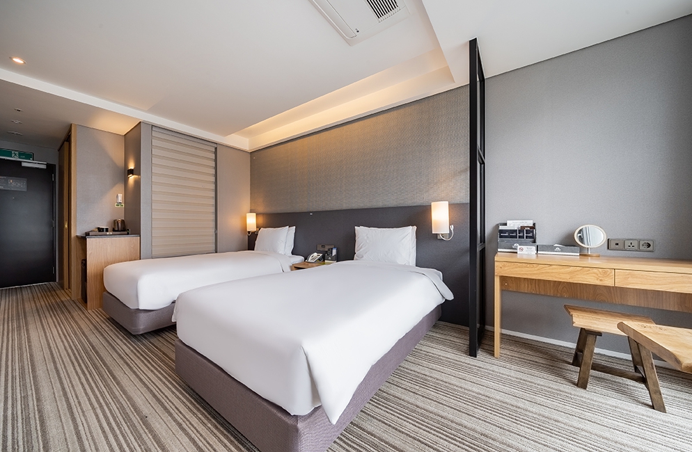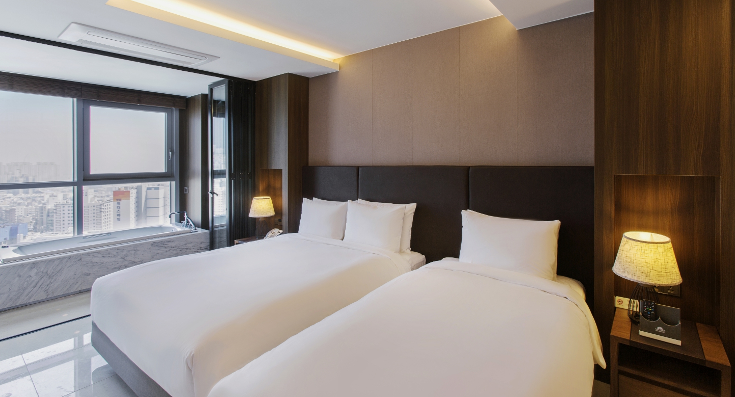 한 건물에 3개(?)의 호텔이 함께 있어서 신기했어요. 직원분께서는 매우 친절하셨고, 트리플룸 이용했는데 15층에 묵었습니다. 가운데는 건물이 가로 막았지만 왼쪽을 봐도, 오른쪽을 봐도 오션뷰긴 했어요! 화장실도 넓어서 이용하기 편했고, 주말인데도 저렴한 가격에 이용해서 매우 만족했습니다!