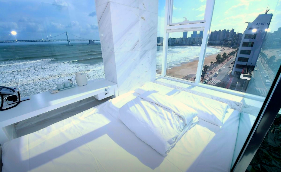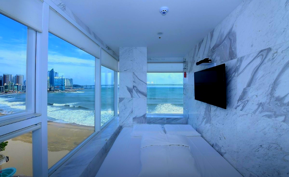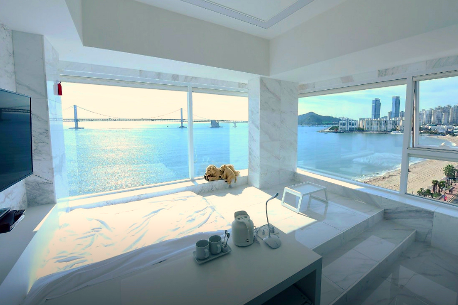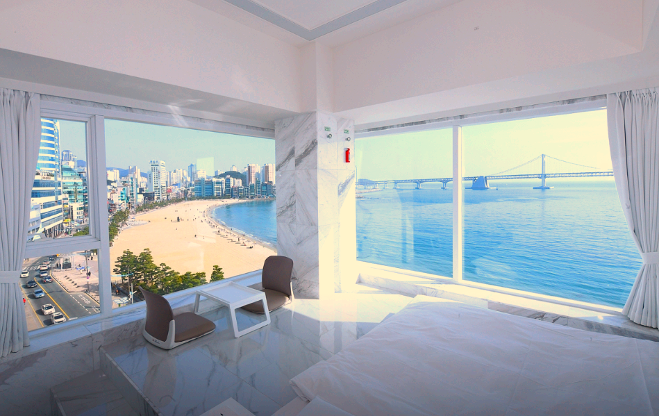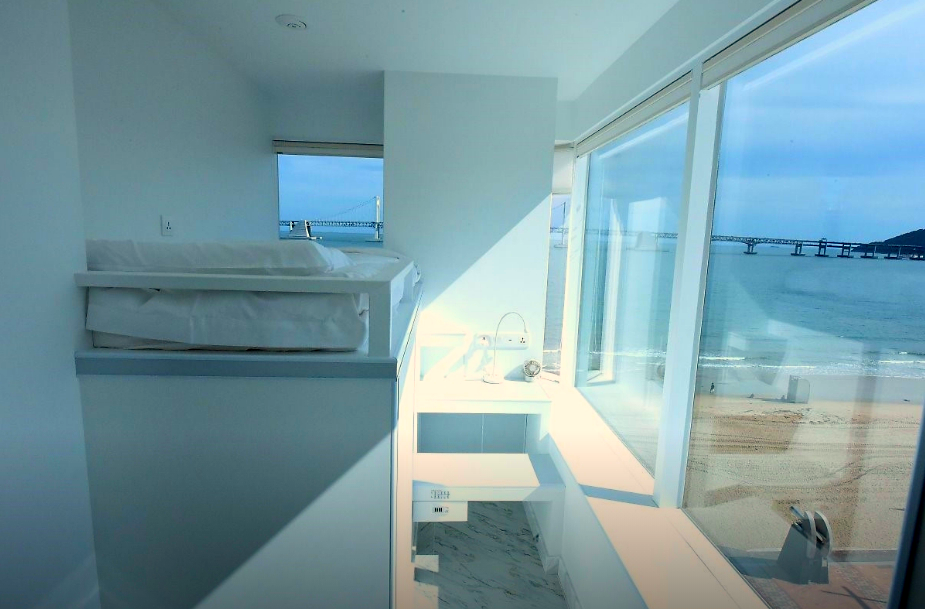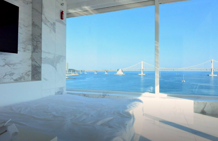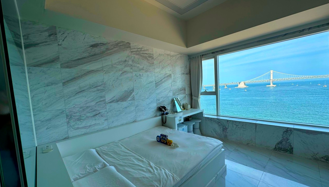 광안리해변 바로 앞에 있고 주변에 먹거리도 많아서 편한 여행했습니다 주차도 체크인 전 지하에 편하게 이용할 수 있었고, 호텔 숙박을 하면 1층에 카페를 반값에 이용할 수 있었는데 착즙 과일주스가 너무 맛있어서 기억에 남아요 분위기가 전반적으로 화이트 톤으로 먼지 하나없이 청결했고 아침으로 간단하게 라면과 콘푸라이크가 제공되어 신박했습니다^^ 날씨가 맑지않아 아쉬웠지만 뷰는 정말 최고였어요!