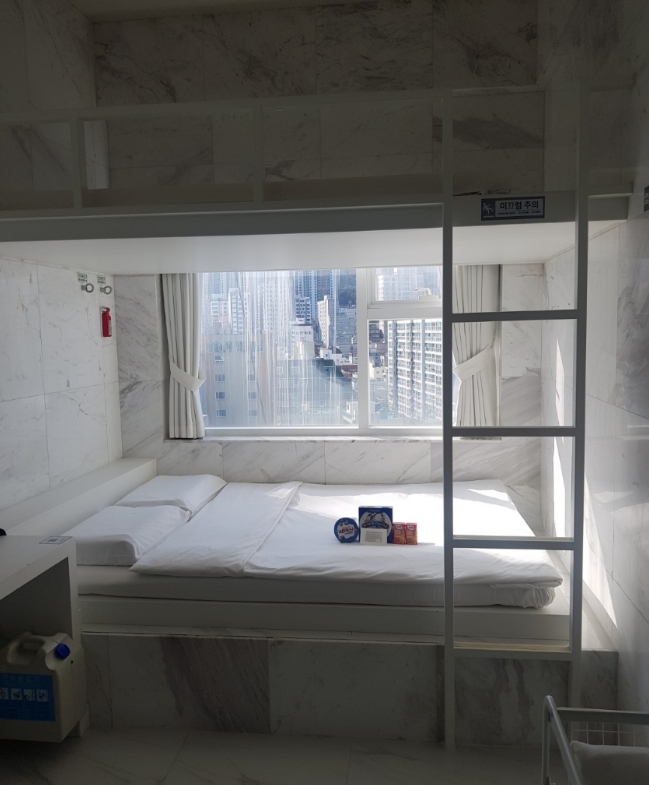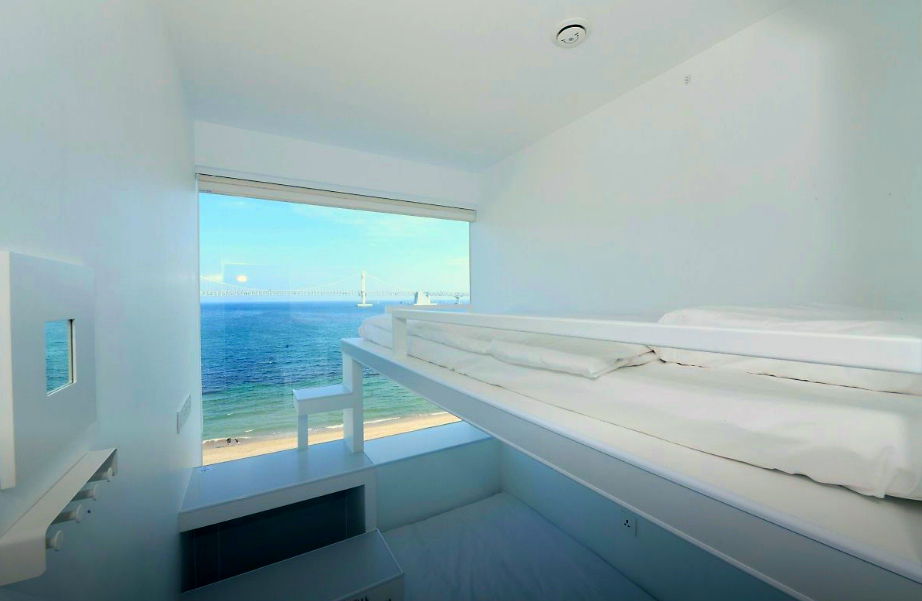 부산 엑스포 유치기원 행사때문에 사람이 몰려 엄청 비싸게 예약을 하게되었고 방도 없어서 간신히 잡았습니다 ㅠㅠ그래도 방이 있었다는것에 감사…바다가 보이는 곳은 너무 비싸서 바다 없는 곳으로 예약을 했는데 진짜 누울 자리만 있긴했어요ㅋㅋ새벽에 도착했는데 문이 커튼이라 눈치가 엄청 보이더라구요..근데 당연히 캡슐호텔이란 걸 알기에 괜찮았어요