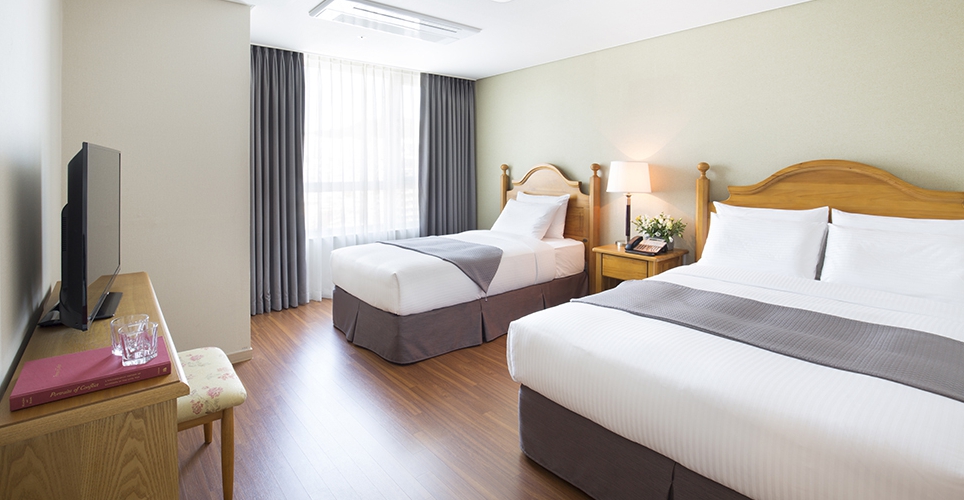 시내 길가라 새벽에 차 소리가 들리긴해도 시끄러운 정도는 아니에요. 다만 온풍이 좀 약한거 같아요 춥진 않았지만 난방이 좀 약한 듯해요! 그래도 아이랑 셋이 자기 넘 좋았고 어메니티도 필요한 것은 구비되어있어요 로비 깔끔하고 1층 투썸 편의점 편해요. 침구도 깨끗하고 룸컨디션 전반적으로 깔끔합니다.