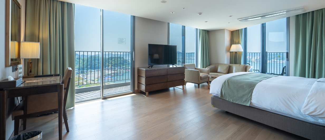 호텔 뒤쪽 긴 해안 산책로도 있고 룸 컨디션도 좋아 꿀잠 잤네요 높은 곳에 위치하고 건물이 통영에서 제일 높아 풍경이 대단합니다 아침 조식은 맛도 있지만 뷰가 다합니다 사우나도 숙박객 할인으로 이용하고 편안하게 있다가 왔습니다 침구류도 편해요 가격 대비 꿀입니다