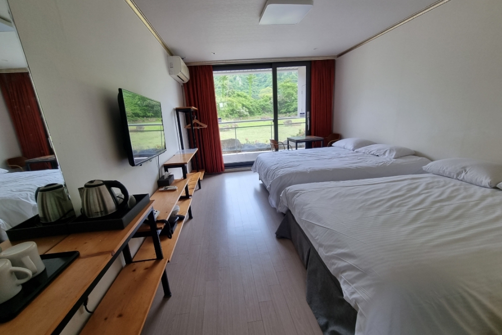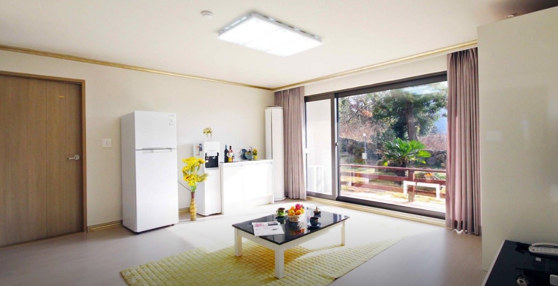바로 앞에 편의점 있어서 차 타고 나갈 일도 없고 필요한 거 있을 때마다 요긴하게 이용했어요 방 청소 상태나 욕실도 깨끗했구요 하루 더 있을까 했는데 수학여행 단체 예약이라 방이 없더라구요... 가성비 숙소로 딱입니다. 전반적으로 시설들이 모두 깔끔하고, 청결합니다. 여기에 객실 내부 구조도 좋고 산방산 뷰 보고 힐링할 수 있어서 좋았어요