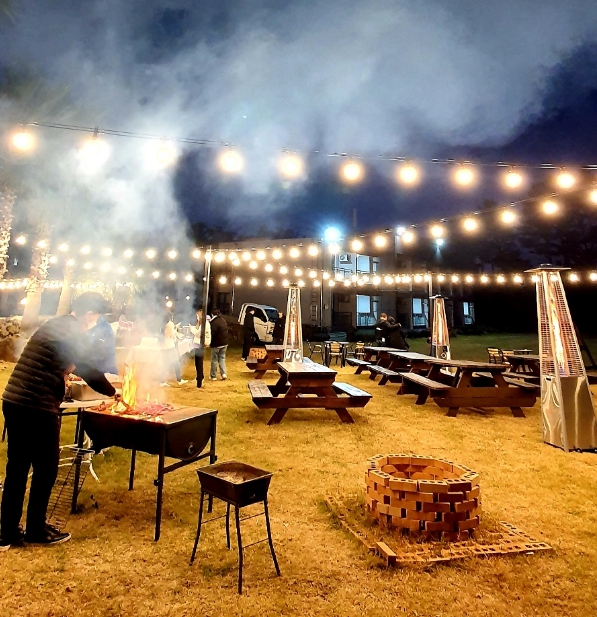 넓은 부지에 2층 짜리 몇 개동으로 이루어져 제법 규모가 큽니다. 안에서 간단히 산책까지 가능할 정도입니다. 체크인 동에 있는 치킨집에서 치킨 픽업해서 야식 먹는 것도 좋았어요. 편의점도 무인매장으로 이용 가능하며 야외바베큐랑 치킨집이 일욜일엔 쉰다고 하니 참고하세요